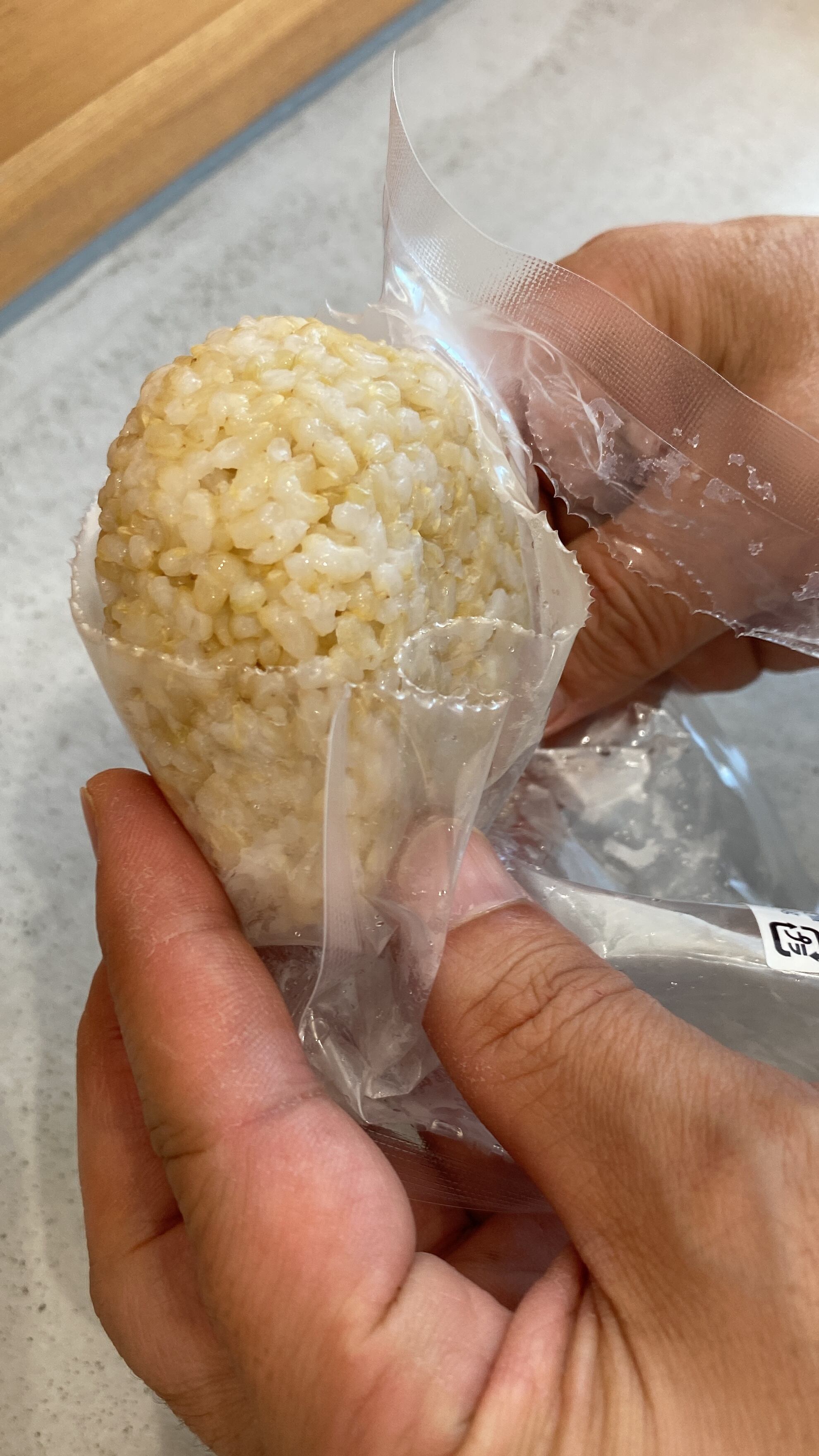 1個ずつ冷凍して真空パックしていますので、そのままレンジで加熱するだけで、いつでも簡単に美味しい玄米おにぎりをお召し上がりいただけます